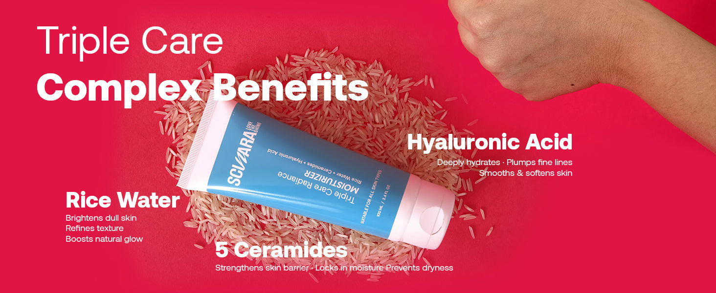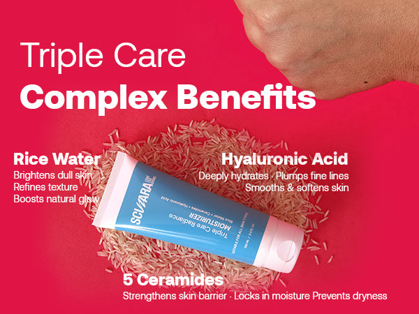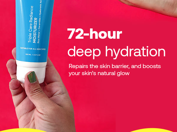 It delivers 72-hour deep hydration, strengthens the skin barrier, and restores a radiant, healthy glow with Rice Water, Ceramides, and Hyaluronic Acid.